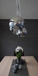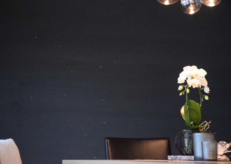 Um dies zu erfüllen, wurde über dem Esstisch eine neue dekorative Leuchte montiert, an der Wand ein dunkler Lehmputz angebracht und die Fenster mit dekorativen Vorhängen gestaltet.