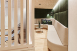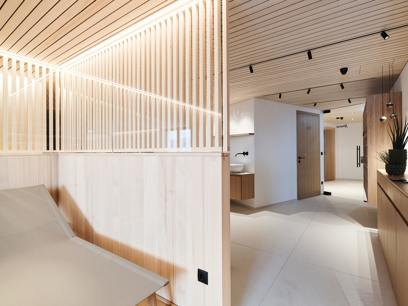 Eine neue Saunenlandschaft, inkl. Lese-Nische und abgeschlossenem Ruheraum mit Außenterrasse wurde mit viel Holz gemütlich gestaltet.