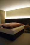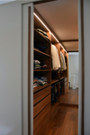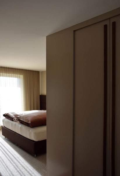 Im Schlafbereich wurde mit indirekter Beleuchtung gearbeitet, in der Ankleide mit direkter Beleuchtung in den Schränken.
