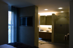 - Ankleide und Schlafbereich bekamen einen neuen Platz, damit der großzügige Blick vom Bett aus wie gewünscht sich zum Bad hin öffnet.