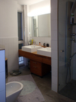 - Einen Teil der Trennwand und die Türe zum Bad wurden abgerissen, damit wurde das Bad zum Schlafzimmer hin geöffnet. Der gesamte Raum wurde dadurch größer.