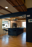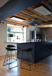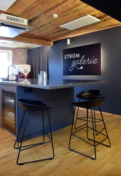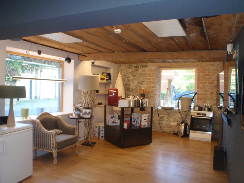 Diese Aufgabe wurde mit einer neuen Schauküche und passenden Möbeln zur Präsentation der Kleingeräte - alles unter Berücksichtigung des besonderen Flairs des Altbaus - umgesetzt.