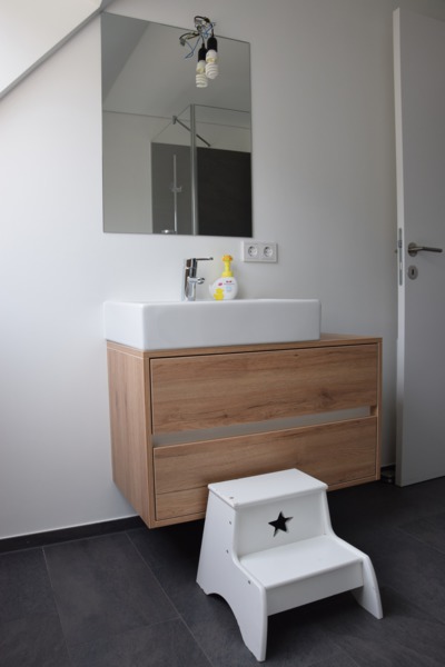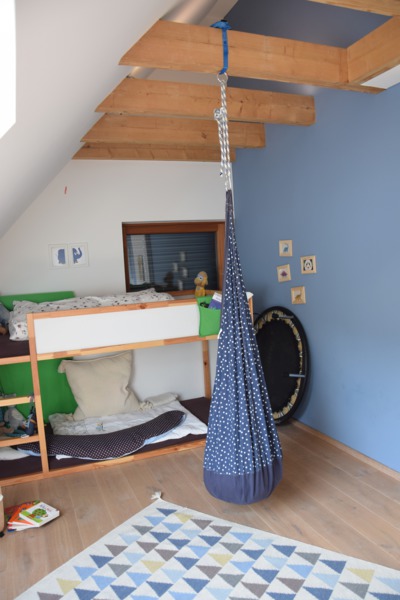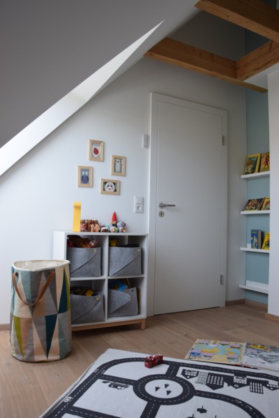 Aus dem großen offenen Raum wurden zwei Kinderzimmer und das bereits renovierte Bad wurde zu einem funktionalen Bad für Kinder umgestaltet.